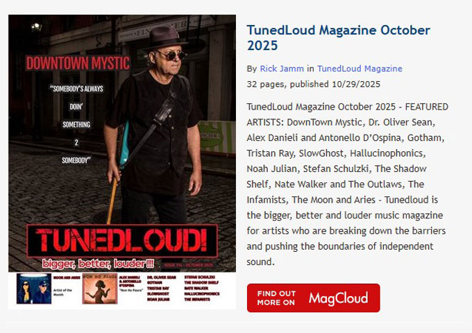 TunedLoud Magazine October 2025 – FEATURED ARTISTS: DownTown Mystic, Dr. Oliver Sean, Alex Danieli and Antonello D’Ospina, Gotham, Tristan Ray, SlowGhost, Hallucinophonics, Noah Julian, Stefan Schulzki, The Shadow Shelf, Nate Walker and The Outlaws, The Infamists, The Moon and Aries – Tunedloud is the bigger, better and louder music magazine for artists who are breaking down the barriers and pushing the boundaries of independent sound.