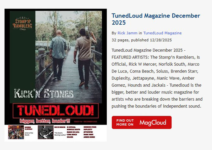TunedLoud Magazine December 2025 – FEATURED ARTISTS: The Stomp’n Ramblers, Is Official, Rick W Mercer, Norfolk South, Marco De Luca, Coma Beach, Soluss, Brenden Starr, Duplexity, Jettapayne, Manic Wave, Amber Gomez, Hounds and Jackals – Tunedloud is the bigger, better and louder music magazine for artists who are breaking down the barriers and pushing the boundaries of independent sound.