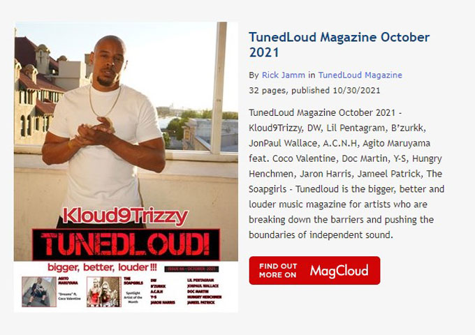 TunedLoud Magazine October 2021 – FEATURED ARTISTS: Kloud9Trizzy, DW, Lil Pentagram, B’zurkk, JonPaul Wallace, A.C.N.H, Agito Maruyama feat. Coco Valentine, Doc Martin, Y-S, Hungry Henchmen, Jaron Harris, Jameel Patrick, The Soapgirls – Tunedloud is the bigger, better and louder music magazine for artists who are breaking down the barriers and pushing the boundaries of independent sound.